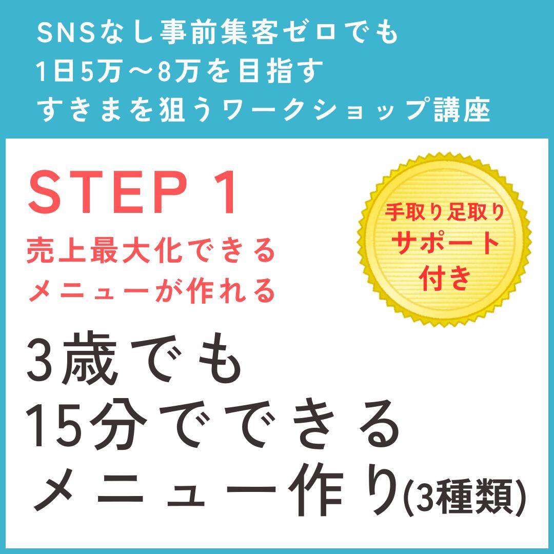 そんな不安を解消するために、STEP1では売上を最大化する3種類のメニュー作りを学びます。